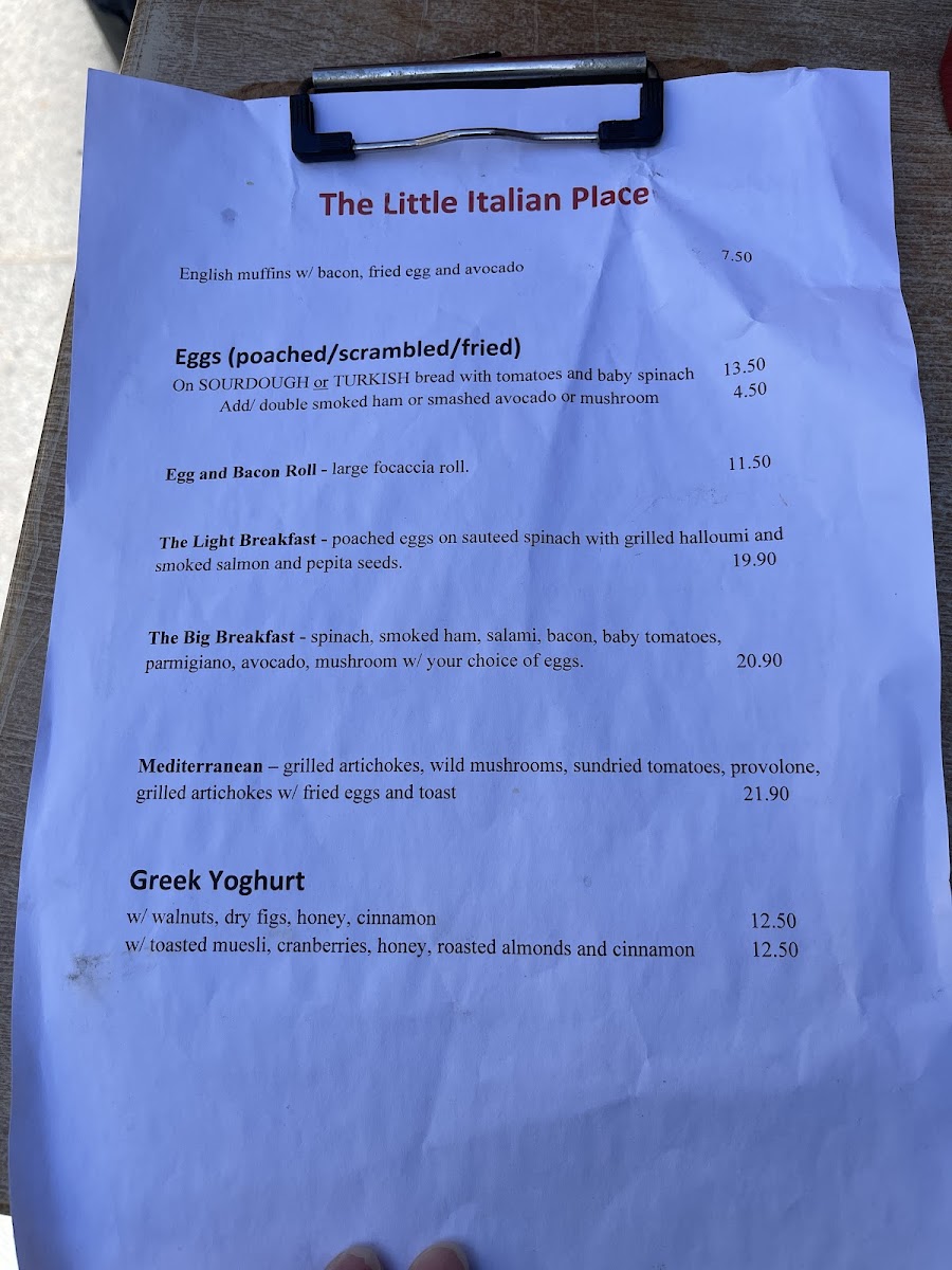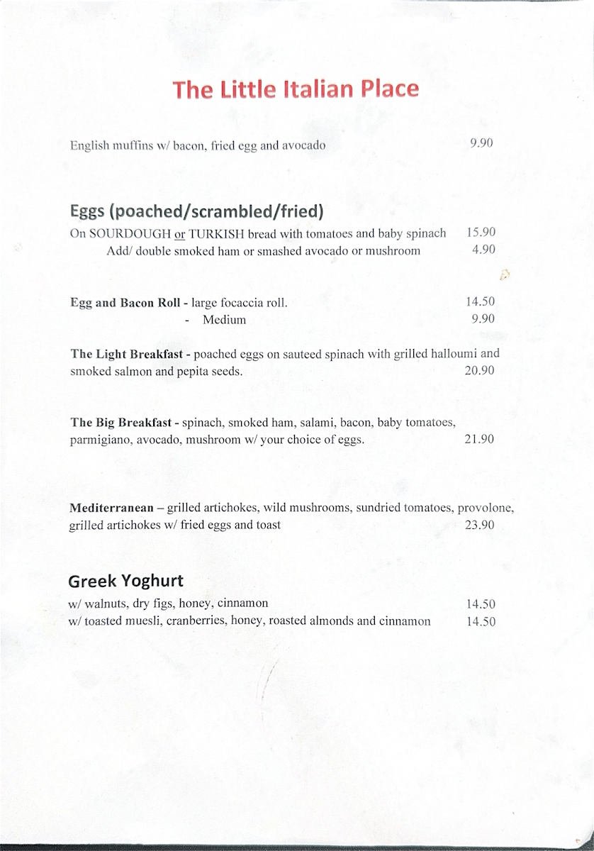 The menu at The Little Italian Place features a variety of Italian-inspired dishes suitable for breakfast, light meals, and casual dining. It is structured into several key sections to accommodate different preferences throughout the day.