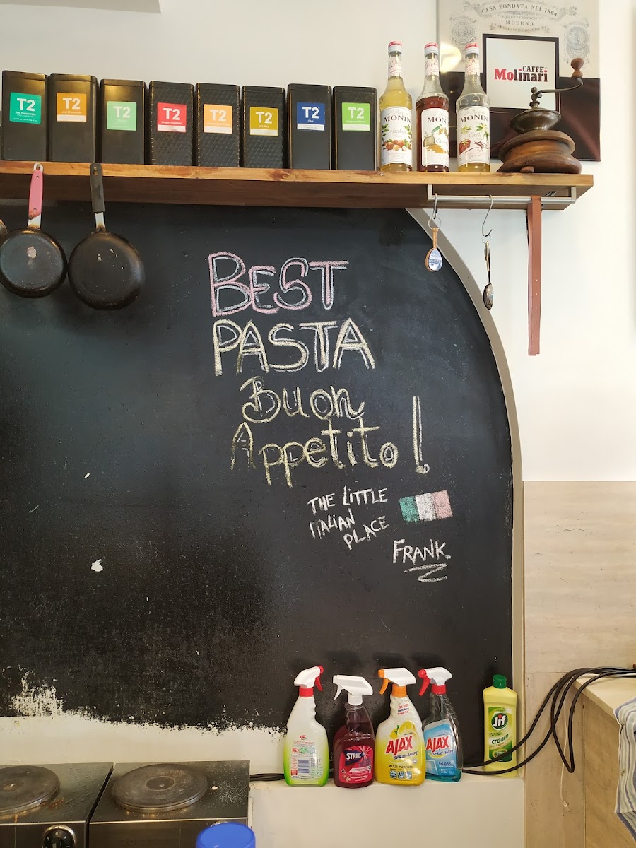 Visitors can expect a combination of breakfast items, light bites, salads, and classic Italian pasta dishes designed for casual dining or quick meals.